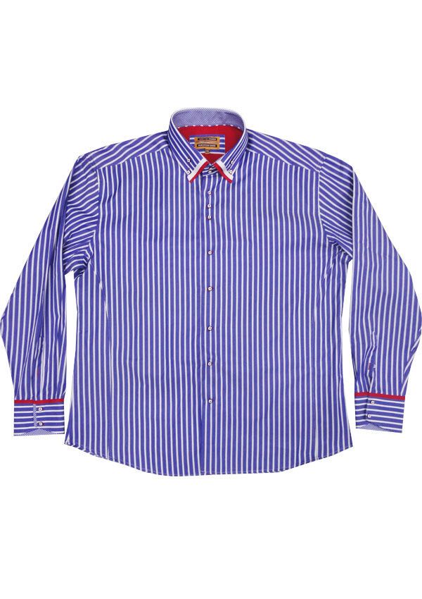 36 Degrees Collegno Dual Collar long sleeve shirt. With button collar. Double layered collar. Contrast pattern inside cuffs and collar. Made of 80% Cotton/ 20% Polyester.
