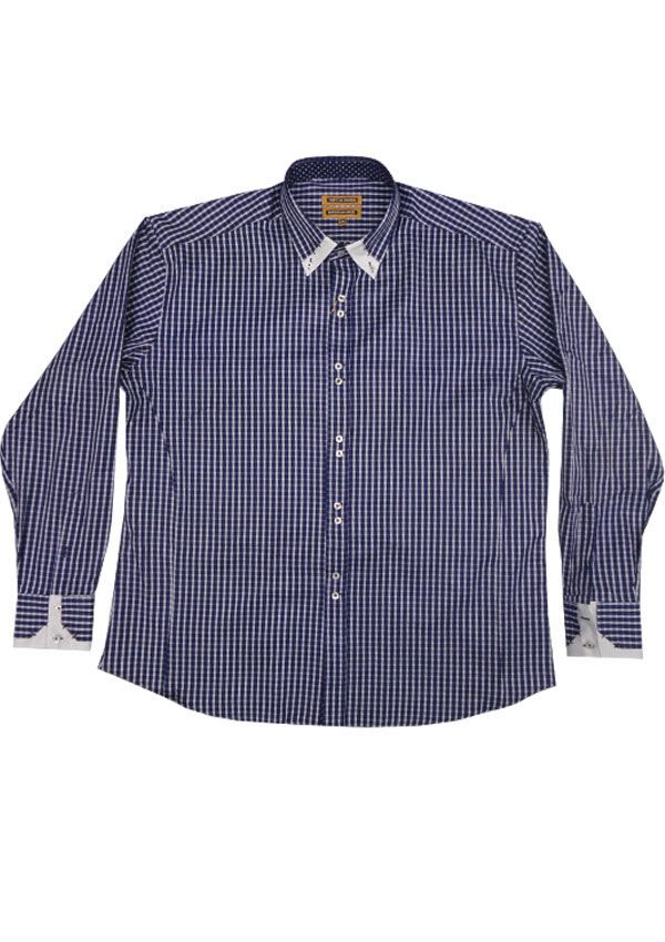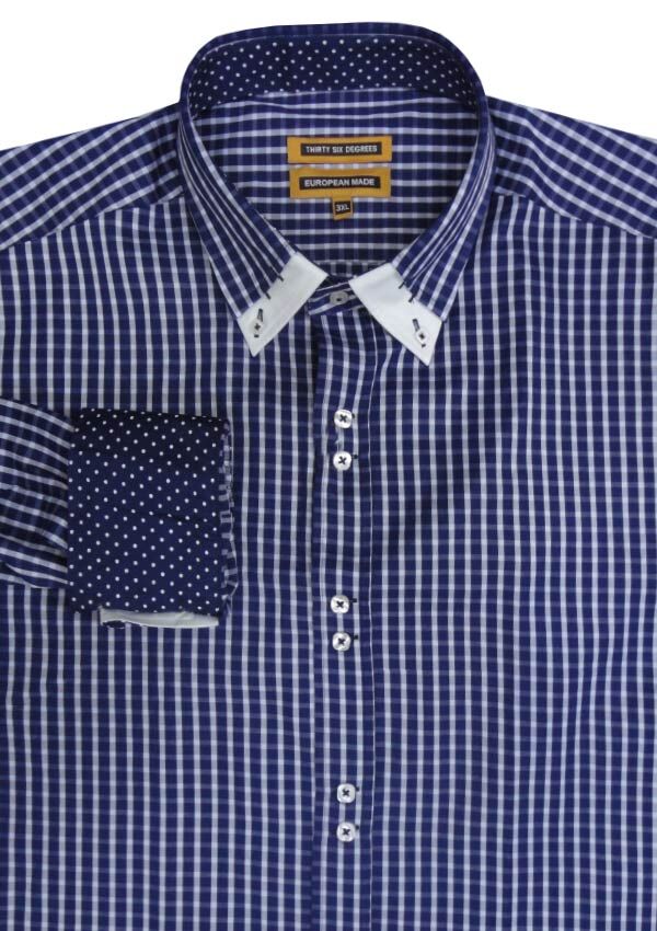 36 Degrees Prima Dual Collar long sleeve shirt. With button collar. Double layered collar. Contrast pattern inside cuffs and collar. Made of 80% Cotton/ 20% Polyester.