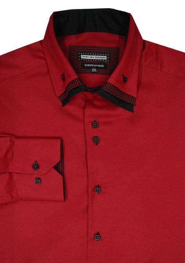 36 Degrees Triple Collar long sleeve shirt. Contrast cuffs when folded up. Made of 80% Cotton/ 20% Polyester.