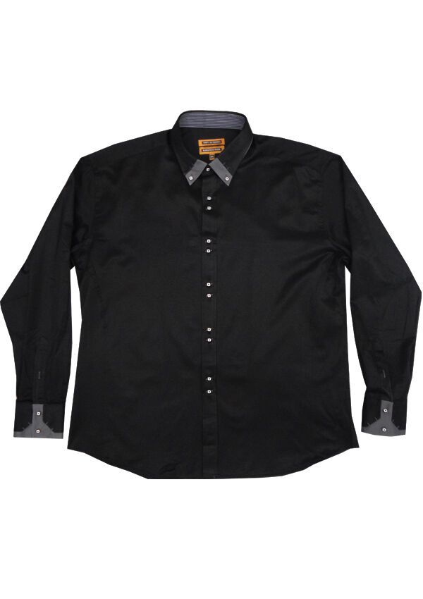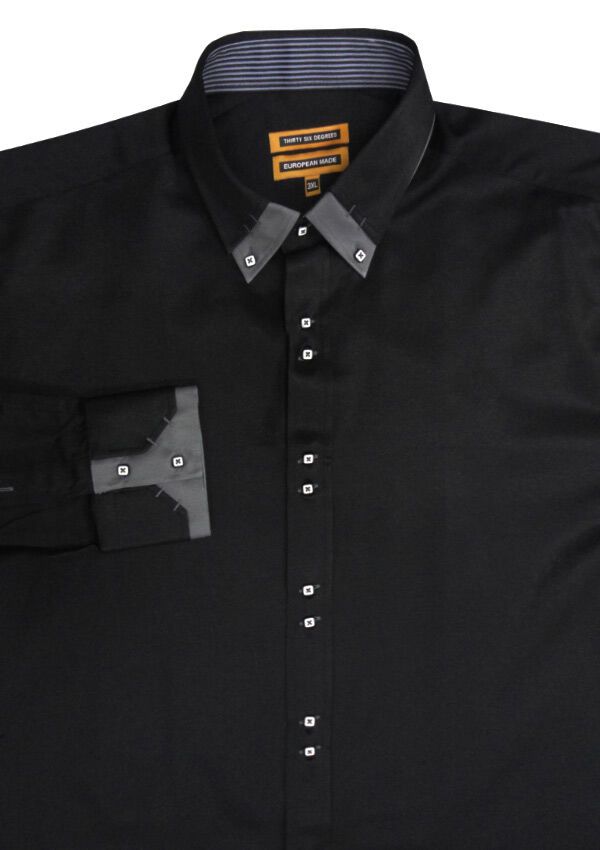 36 Degrees Twin Tack Dual Collar long sleeve shirt. With button collar. Contrast colour inside cuff. Double layered collar. Made of 80% Cotton/ 20% Polyester.