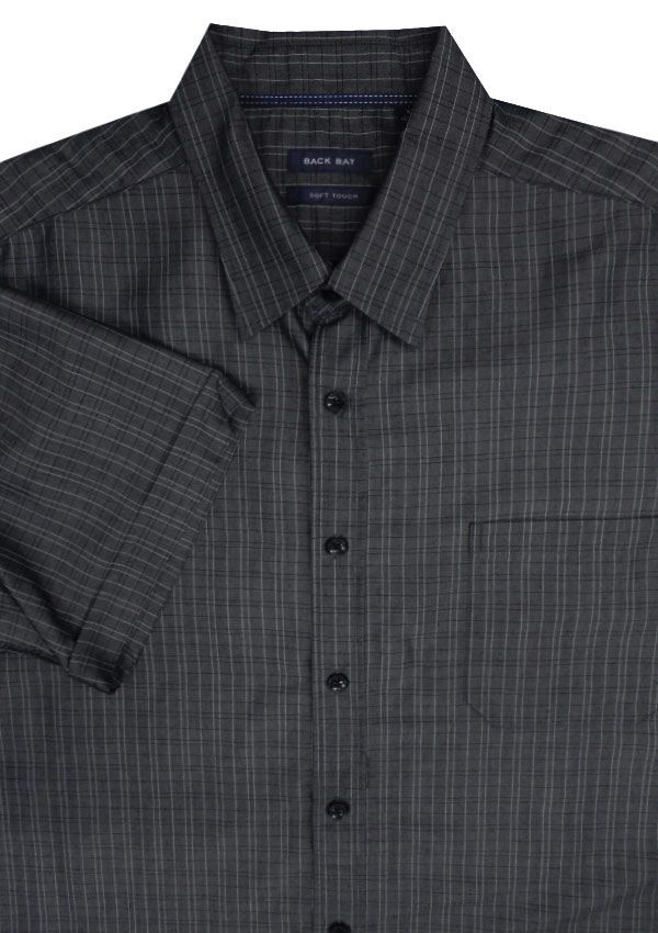 Back Bay Check short sleeve shirt with single chest pocket. Button collar. Soft touch fabric. Regular fit. Made of Rayon/Polyester.