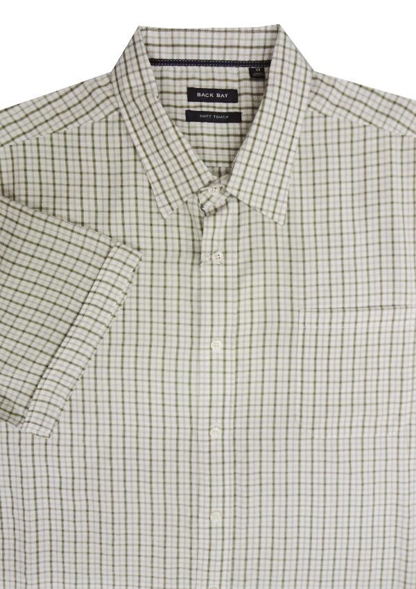 Backbay Check short sleeve shirt with single chest pocket. Button collar. Soft touch fabric. Made of Rayon/ Polyester.