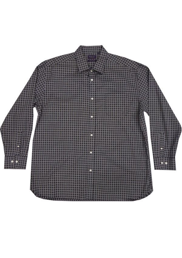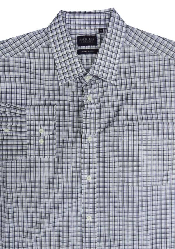 Back Bay Merc Check long sleeve shirt. With single chest pocket and a button collar. Made of Cotton. Size guides for full chest measurements are as follows: XOS = 140CM 2X = 144CM 3X = 148CM 4X = 152CM 5X = 156CM 7X = 162CM 9X = 172CM