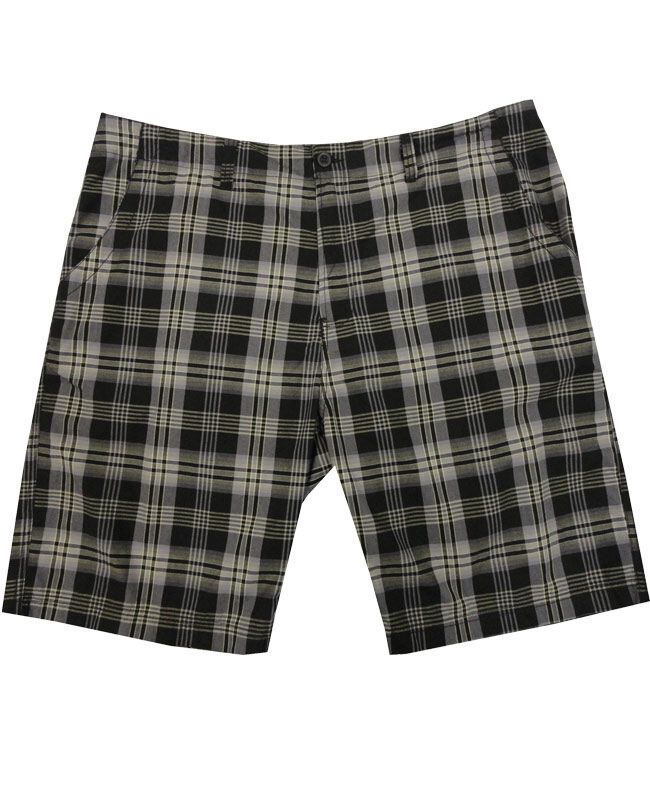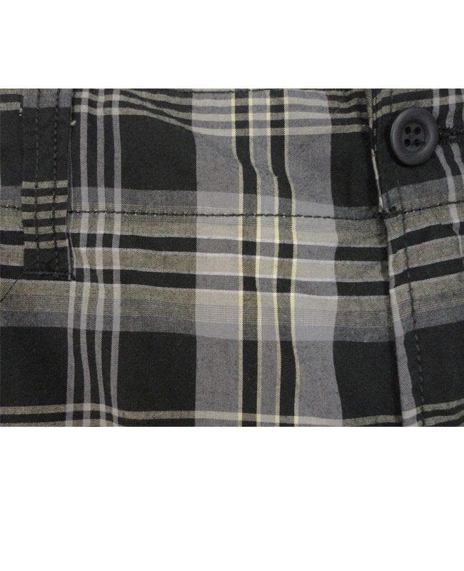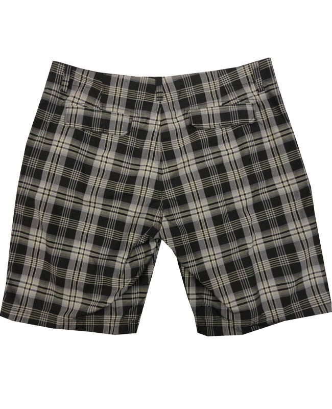 Backbay plaid shorts with fitted waist, belt loops and fly zip. Two slant pockets and two button down back pockets. Made of 100% Cotton.