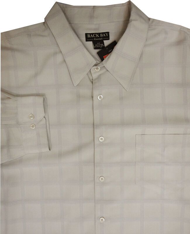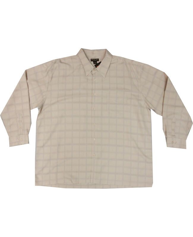 Backbay long sleeve, self check shirt with single top pocket. Made of a rayon/polyester blend.