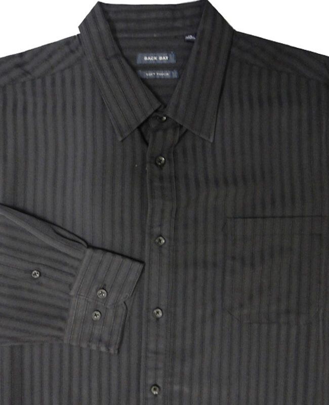 Backbay long sleeved striped shirt with chest pocket and button collar. Made of Rayon/Polyester blend.