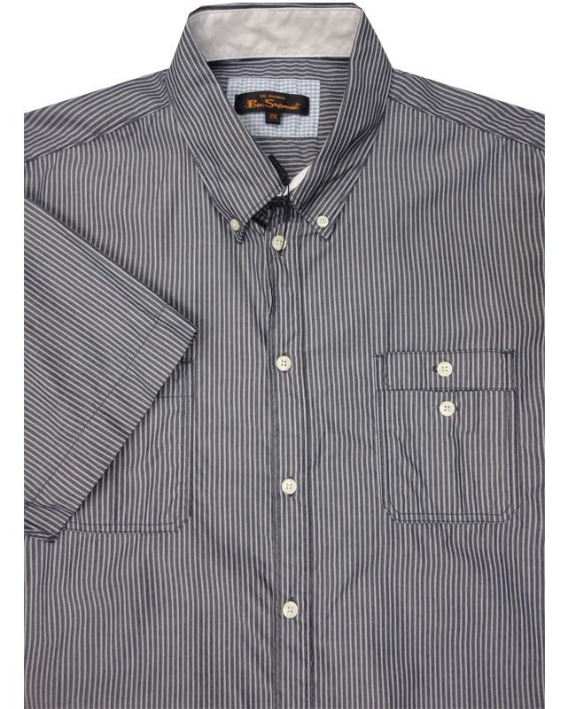 Ben Sherman double striped short sleeve shirt with three chest pockets (two of them buttoned), and button down collar. Made of 100% Cotton.