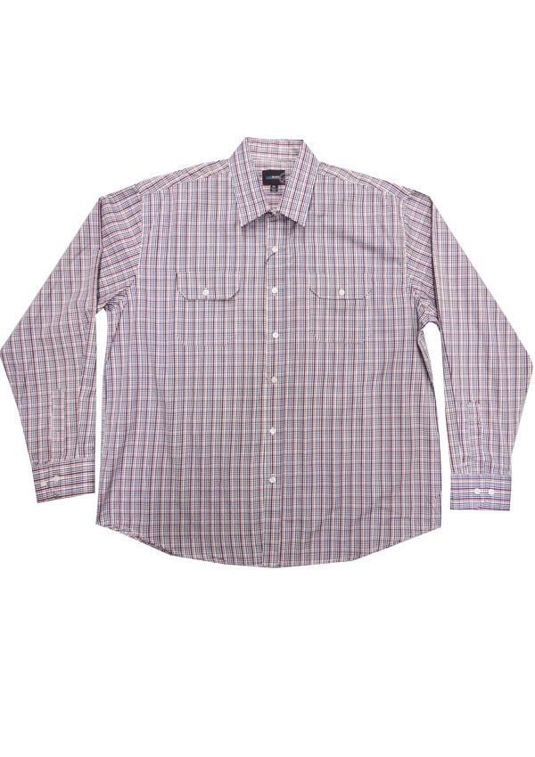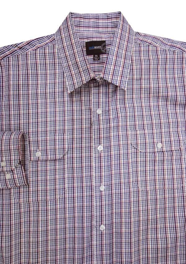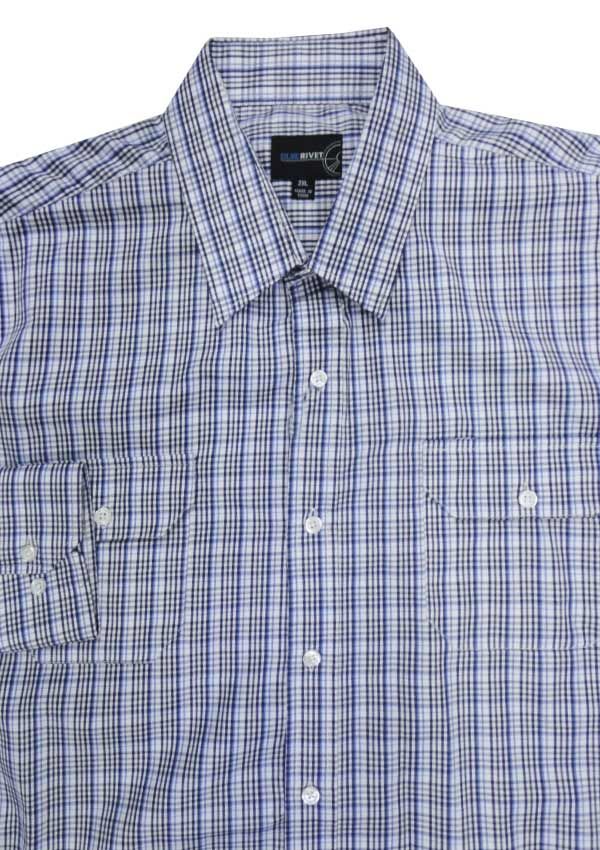 Blue Rivet check long sleeve shirt with two check pockets and button collar. Made of Cotton/ Polyester.