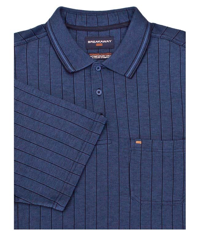 Breakaway vert striped short sleeve polo with single chest pocket. Made of Cotton / Polyester.