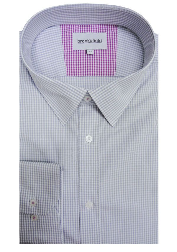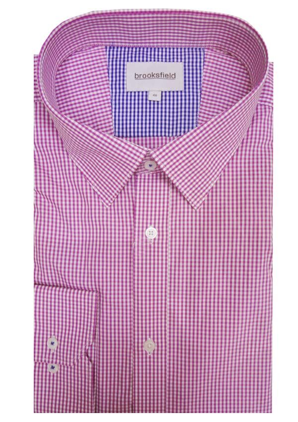 Brooksfield Gingham Check long sleeve business shirt. With button collar. Split yoke. Lined collar. Tailored buttoned sleeve plackets. Made of Cotton.