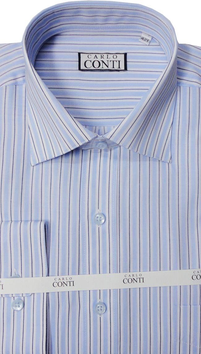 Carlo Conti Tall with blue striped long sleeve, collar attached in 100% cotton featuring two piece collar for smartness and comfort, top fused collar for neatness and long life, high quality easy-care fabric, top fused cuff with two buttons cuff for personalized fit, top fused placket, tailored sleeve plaque, pleated cuff, pocket, top fused single needle armhole and side pleats on back yoke.