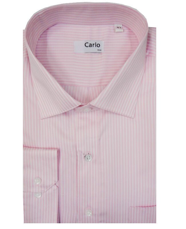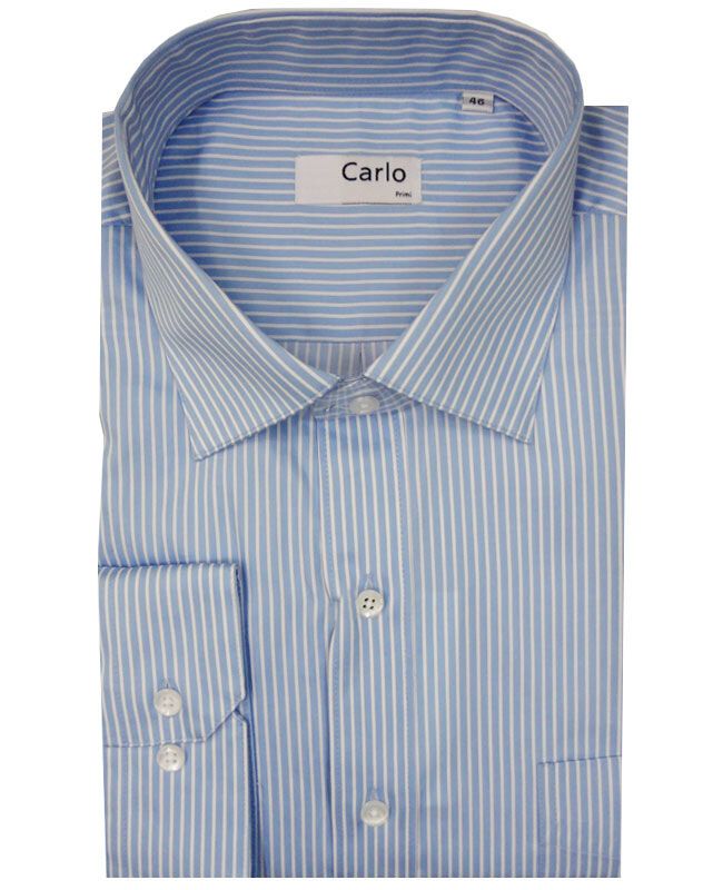 Carlo Conti Stripe long sleeve business shirt with single chest pocket. Tailored sleeve pacquet. Pleat cuff. Made of 100% Cotton.