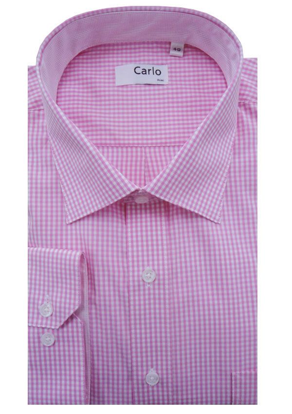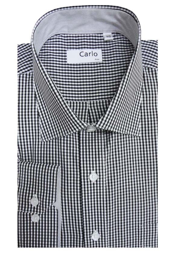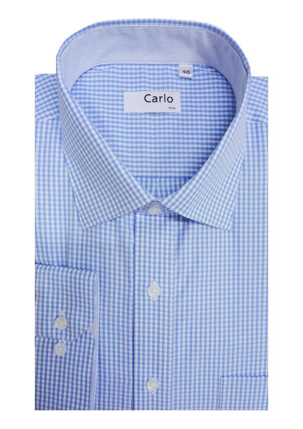 Carlo Primi Trim Gingham long sleeve business shirt. With single chest pocket. Button collar. Tailored sleeve plaquet. Pleated cuff. Side pleats on back yoke. Made of 100% Cotton.