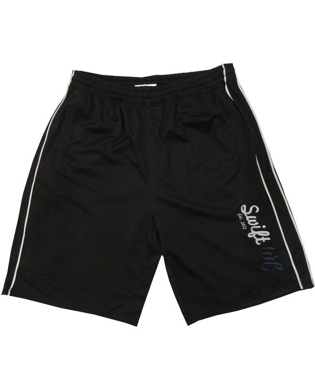 Charcoal 'Swift' basketball shorts with interior draw-strings. Made of 65% polyester and 35% cotton.
