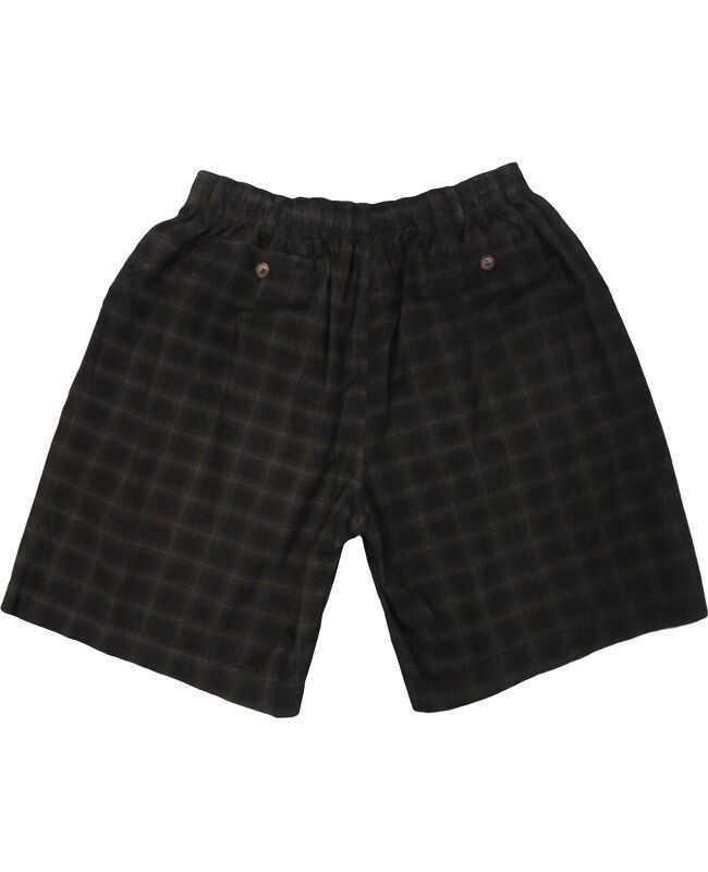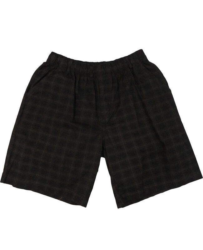 Charcoal big check shorts with elastic waist and draw string. 100% Cotton