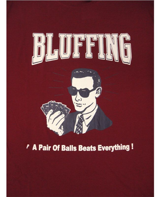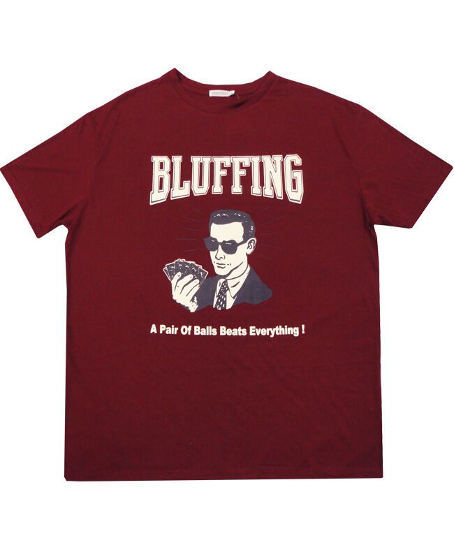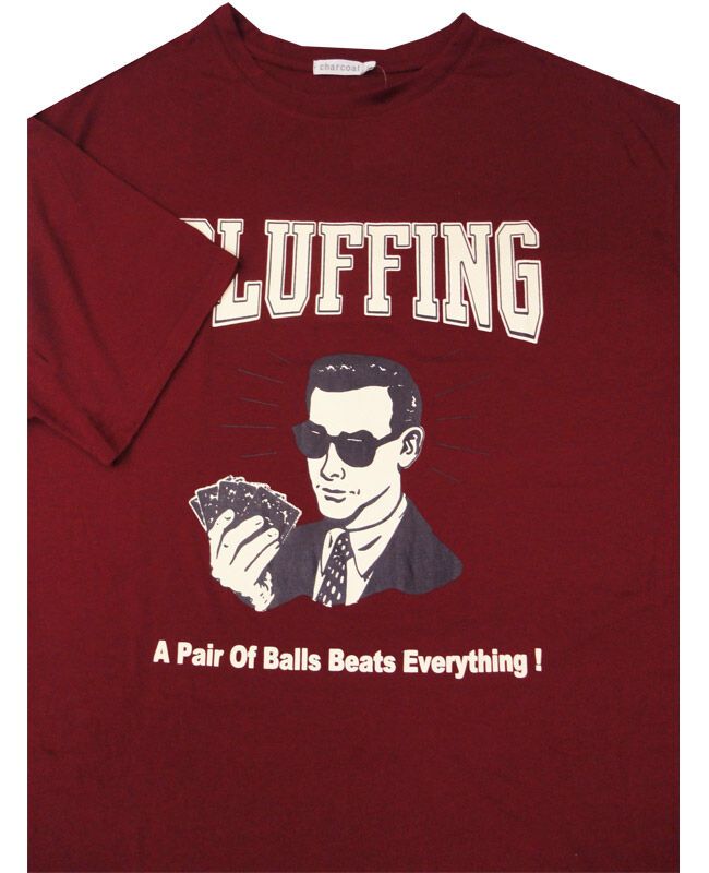 Charcoal bluff t-shirt with large print on chest. Made of a thin fabric. 60% Polyester/ 40% Cotton.
