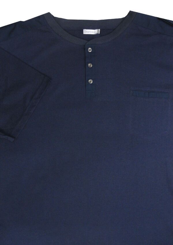 Charcoal Jersey Henley t-shirt with single chest pocket and 1/4 button up front. Made of 55% Cotton/ 45% Polyester.