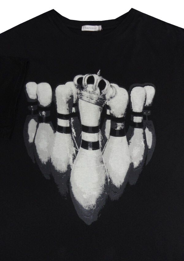 Charcoal King Pin t-shirt. With large print on front. Made of 60% Polyester/ 40% Cotton.