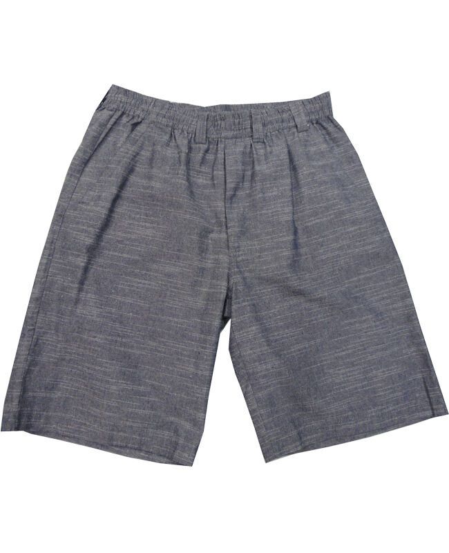 Charcoal elastic waist shorts with belt loops and three pockets. Made of 65% polyester and 35% cotton.