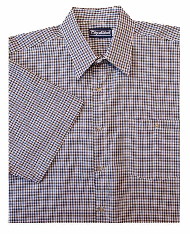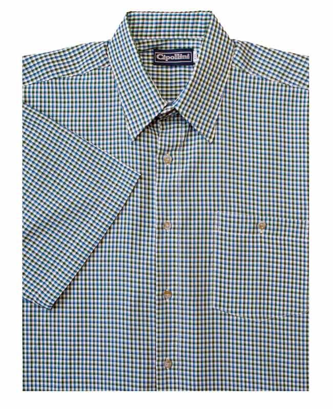 Cipollini gingham short sleeve shirt with single chest pocket. Made of Polyester and Viscose. Made in Australia.