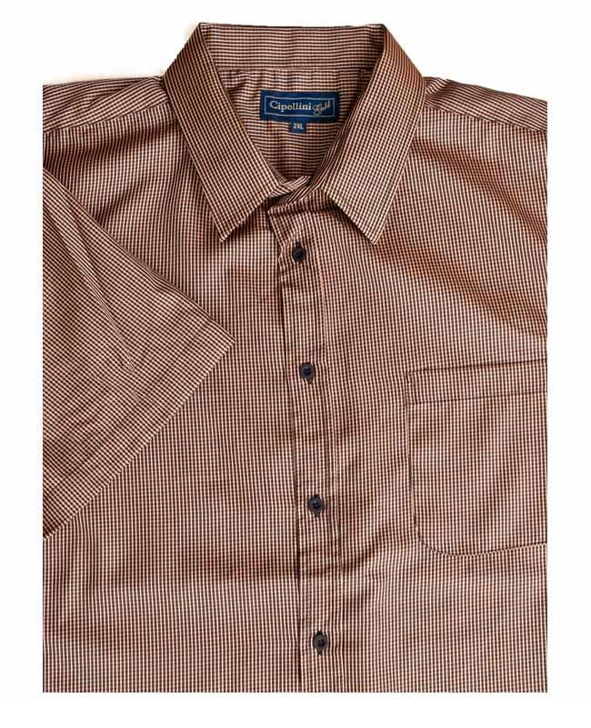 Cipollini mini check short sleeve shirt with single chest pocket. Made of Polyester/ Cotton. Nb. The "Black" colour is actually orange and black minicheck.