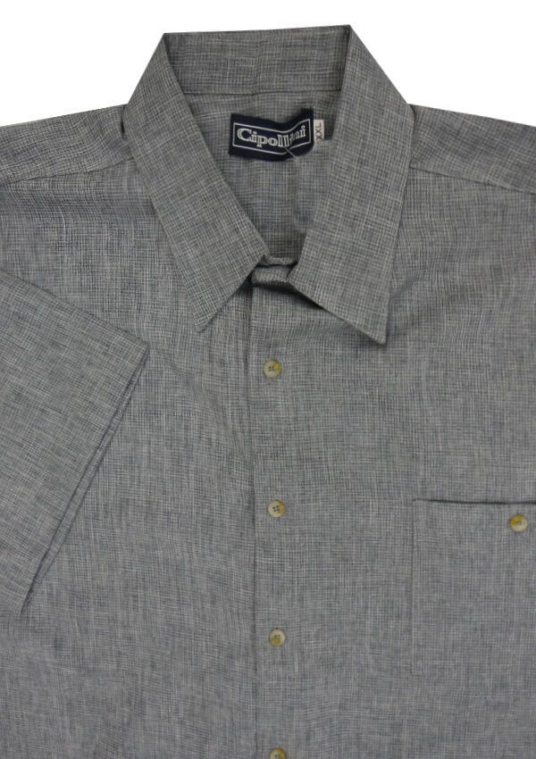 Cipollini window check short sleeve shirt with single chest pocket. Australian made. 100% Polyester. Nb. "Black" colour is more of a grey/ black tone.