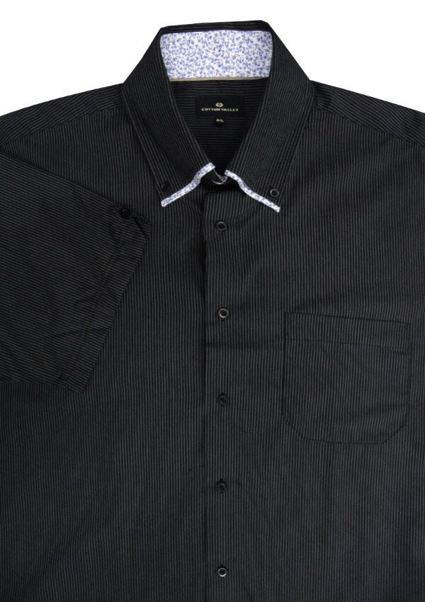 Cotton Valley DB Stripe short sleeve shirt. With single chest pocket. Button collar. Floral pattern on collar. Made of 65% Polyester/ 35% Cotton.