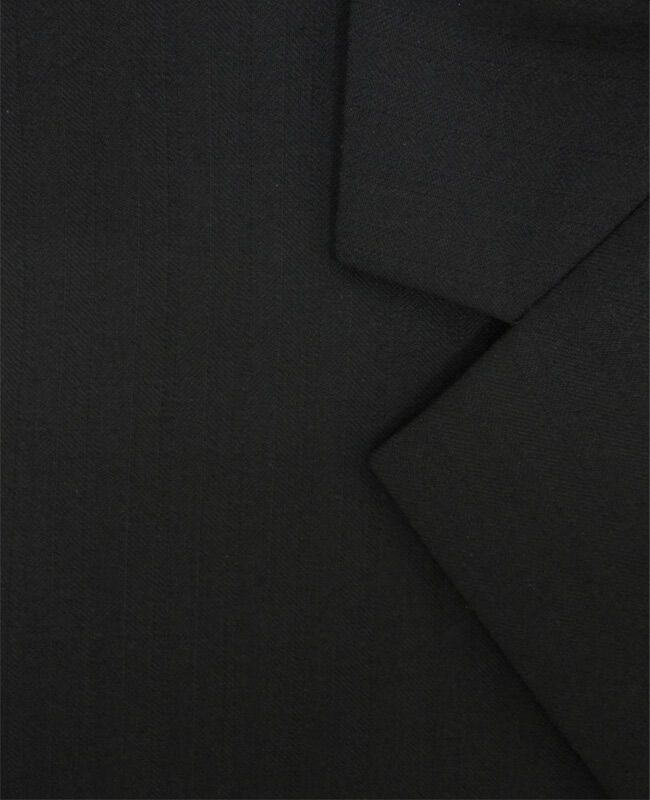 Flair self striped black suit. Flat front trousers fitted with french bearer and fly zip. Two button jacket. Made of 100% pure wool. Nb. Shirt and tie sold seperately.