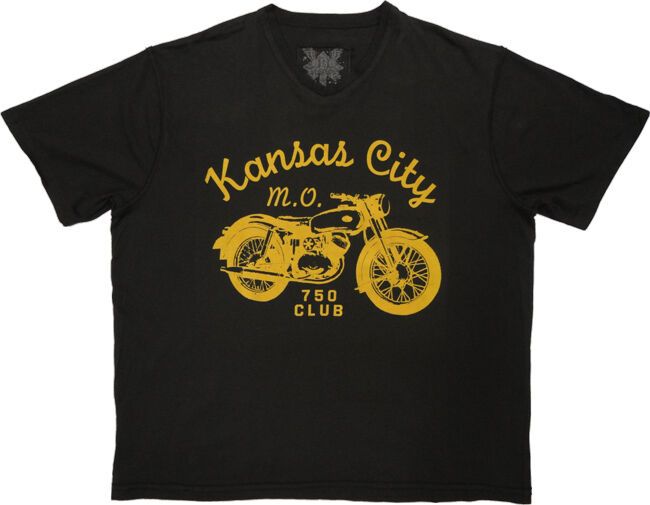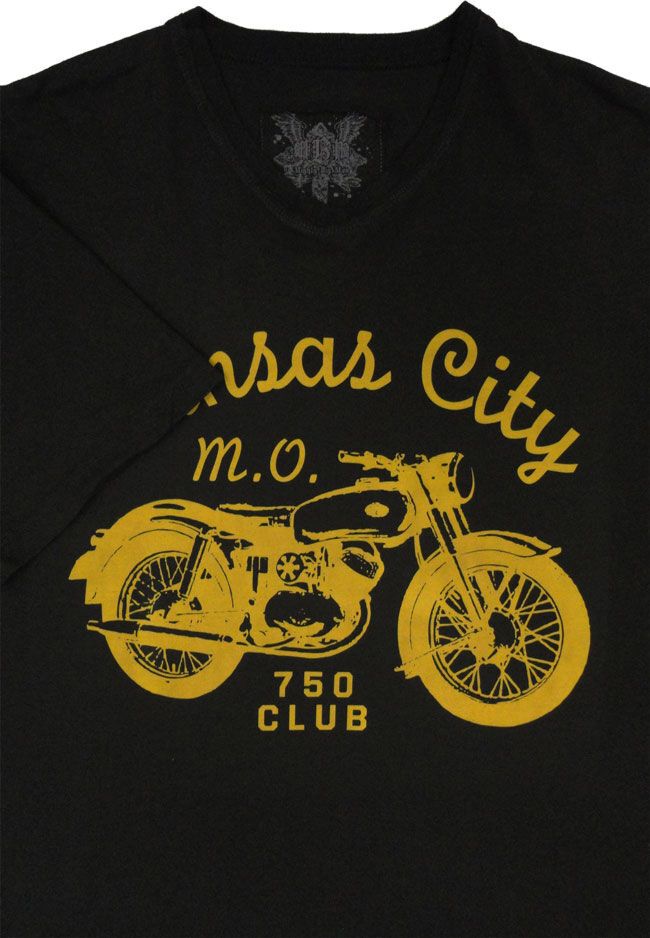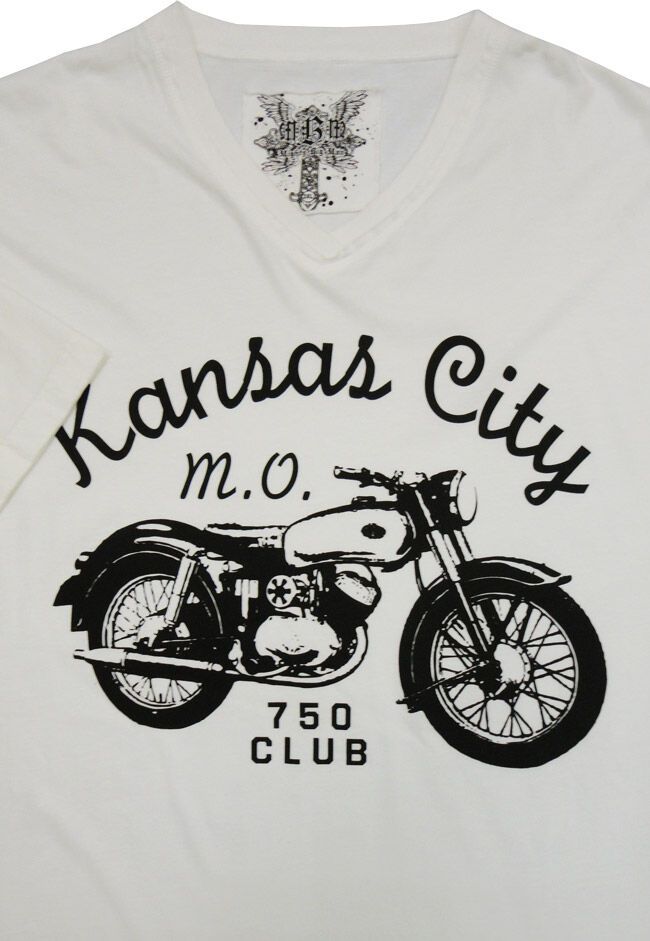 Fusion v-neck with large print of a motorcycle. Made of 100% cotton.