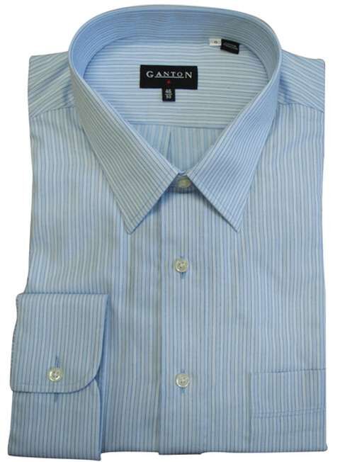 Ganton self stripe long sleeve business shirt, made from a polyester / cotton and has a peak collar and regular cuff. Available in sizes 46-54
