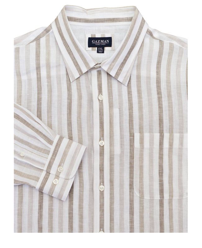 Gazman striped linen long sleeve shirt with single chest pocket. Made of 100% Linen.