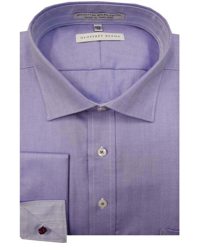 Geoffrey Beene herring patterned long sleeve business shirt with single chest pocket and french cuffs. Made of 60% Cotton / 40% Polyester.