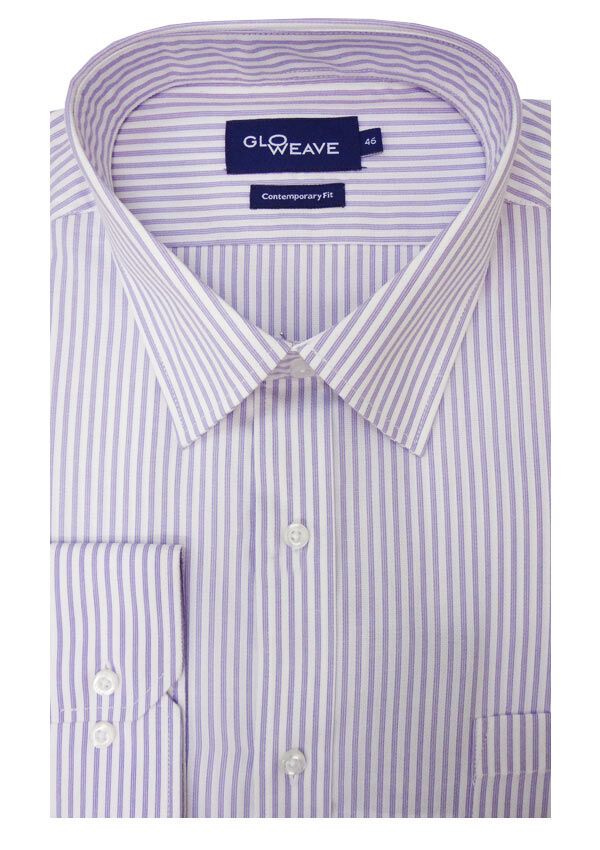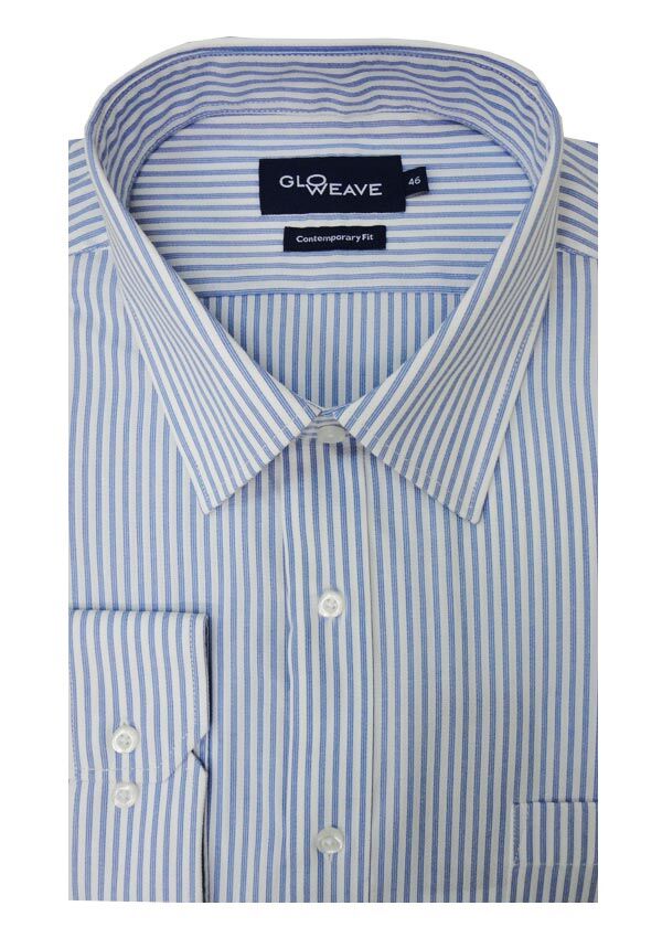 Gloweave Airweave long sleeve business shirt with single chest pocket. Button collar. Contemporary fit. Pleated sleeve with tailored sleeve placket. Top stiched tailored seams. Made of Cotton/ Polyester.