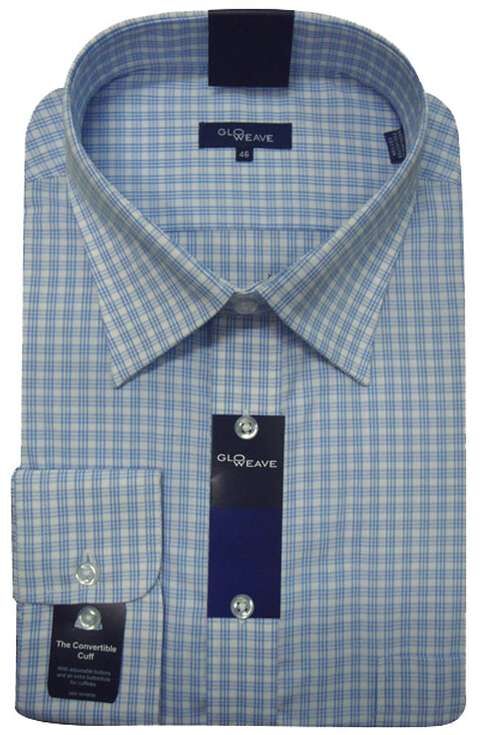 Gloweave small check polyester / cotton long sleeve business shirt with convertable cuff (adjustable buttons and an extra buttonhole for cufflinks).