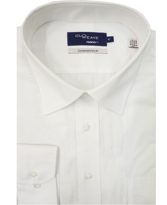 Gloweave herringbone long sleeve, collar attached business shirt. Contemporary fit. Polyester/ Cotton.