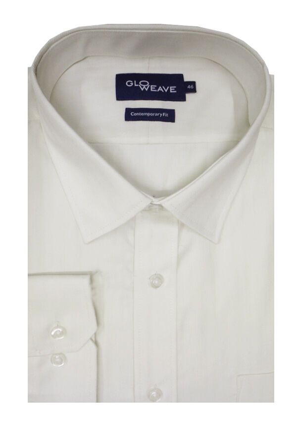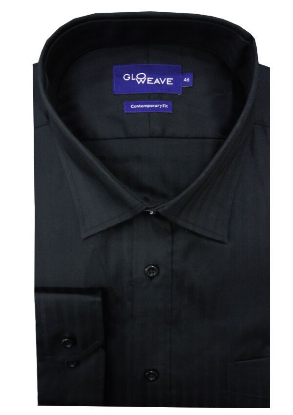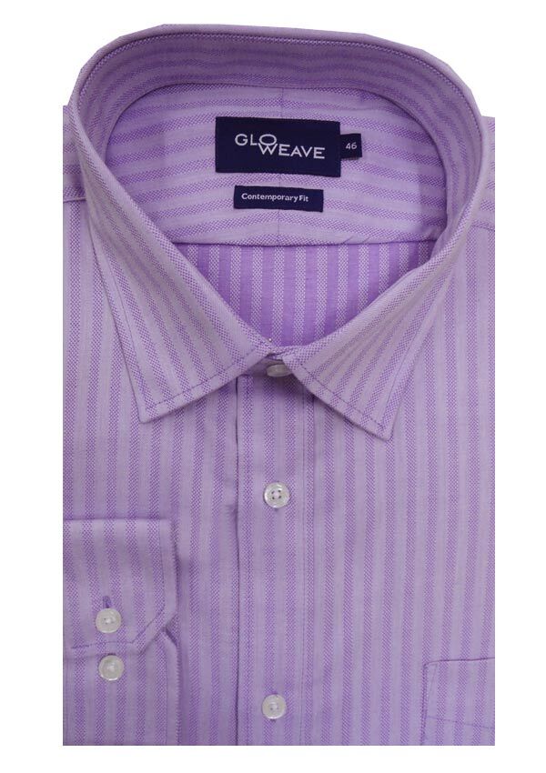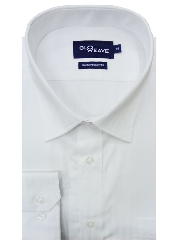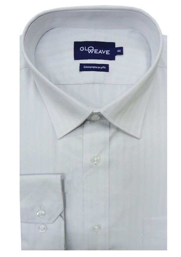 Gloweave long sleeve self stripe business shirt with single chest pocket. Contemporary fit. Made of Cotton/ Polyester.