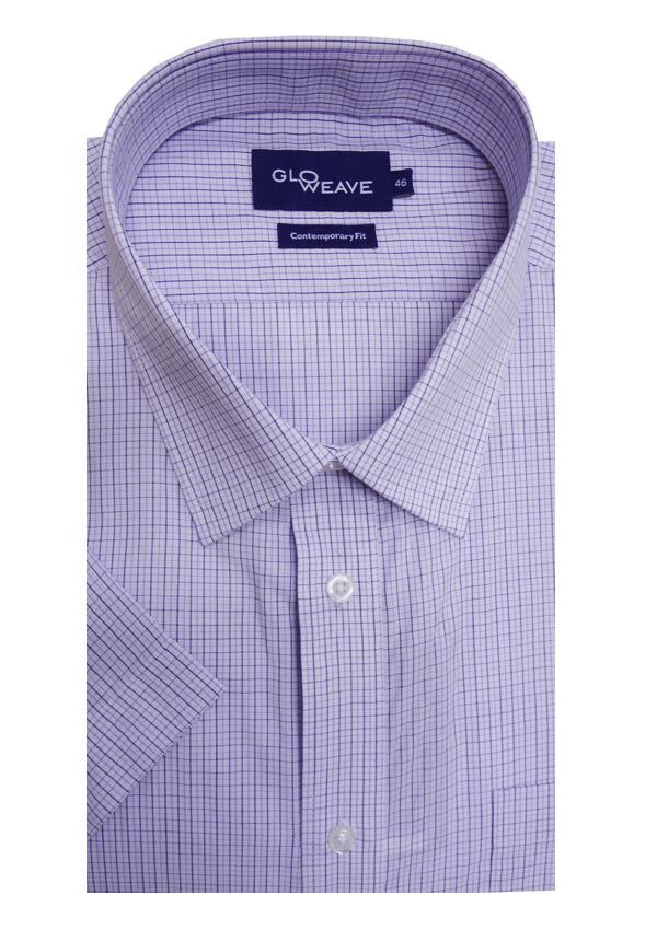 Gloweave Mini Check short sleeve shirt with single chest pocket. Button collar. Contemporary fit. Made of Cotton/ Polyester.