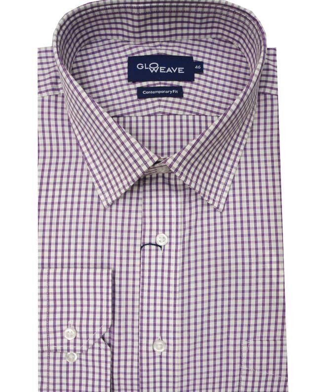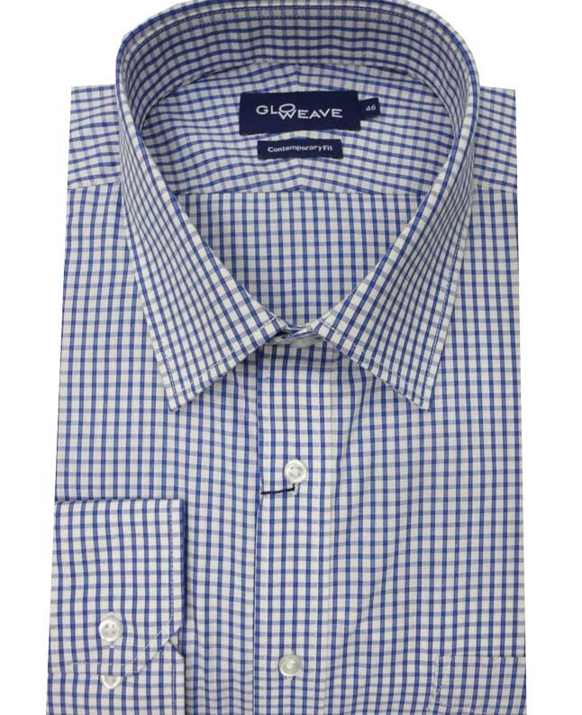 Gloweave contemporary fit, window check pattern, long sleeved business shirt with single chest pocket. Made of cotton/ polyester blend.