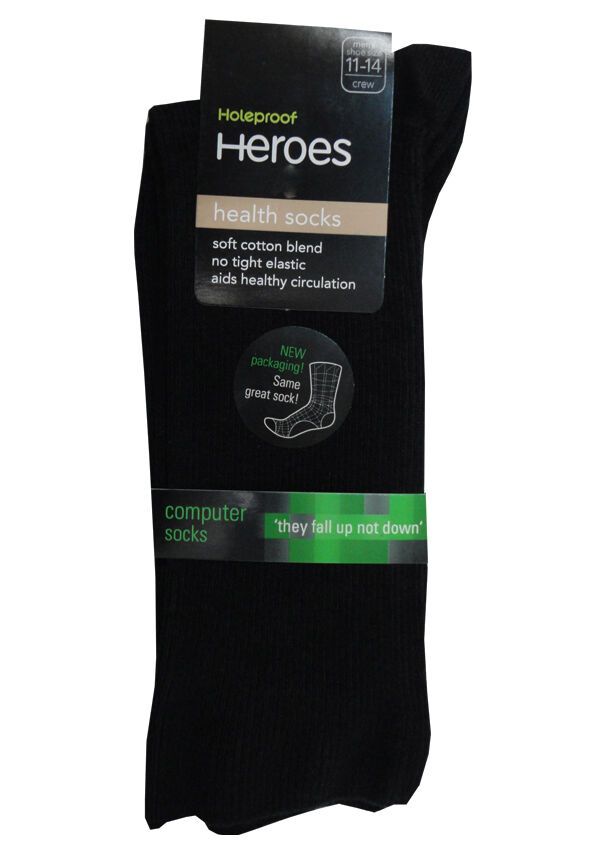 Holeproof Computer socks with smooth toe seam, no tight elastic and specially designed to aid healthy circulation. Made of Soft Cotton blend.