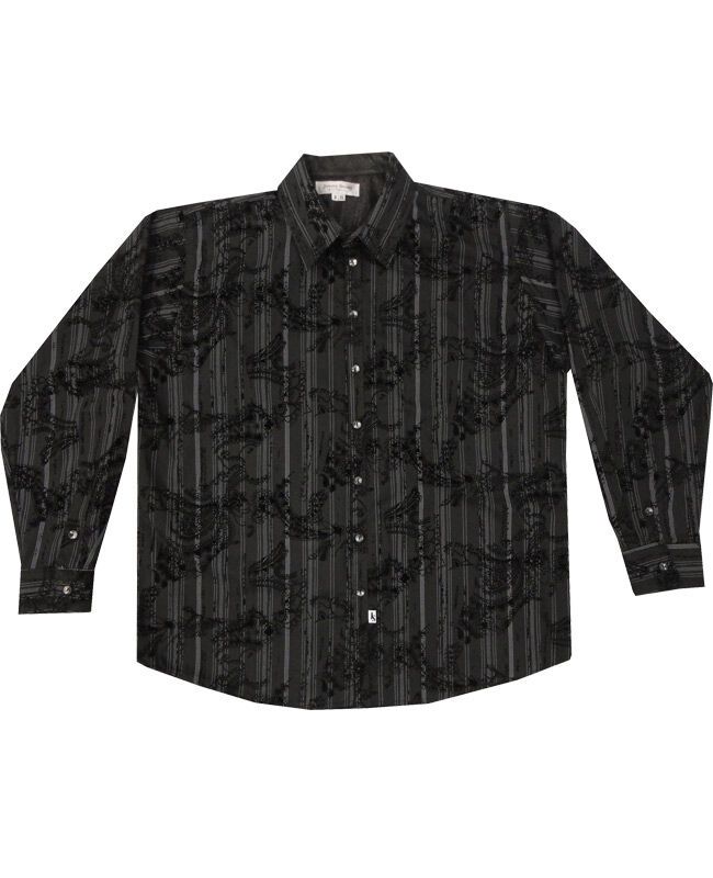 Jimmy Stuart flocking print long sleeve shirt. No pockets. 100% Cotton. Made in Australia.