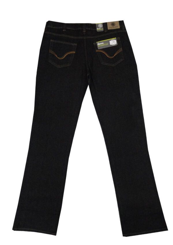 Kam Black Stretch jeans with zip fly and belt loops and five pockets including one coin pocket. Made of 98% Cotton/ 2% Spandex.
