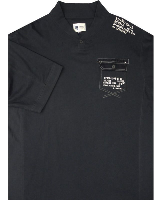 Kam Jeans division short sleeve henely shirt. V neck. Single chest pocket. Made of 100% Cotton.