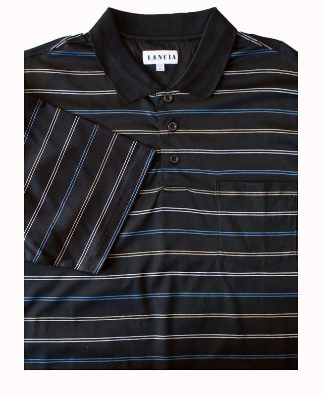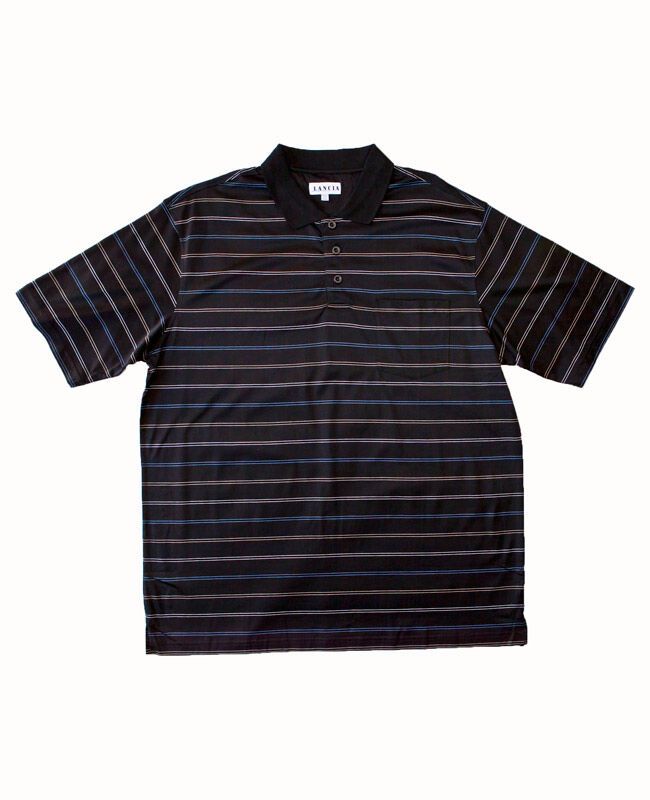 Lancia striped short sleeve polo with single chest pocket. Mercerized Cotton.
