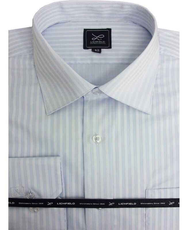 Lichfield tall self striped long sleeve business shirt with collar attached. Single chest pocket. Made of 54% Cotton, 45% Polyester.