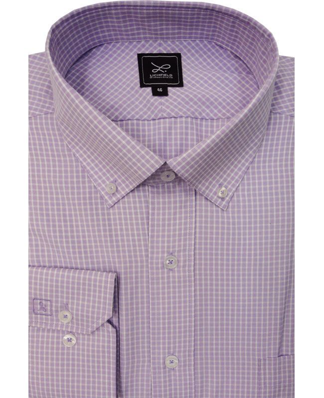 Lichfield window check long sleeve shirt with button down colar and single chest pocket. Made of 50% Cotton and 50% Polyester.