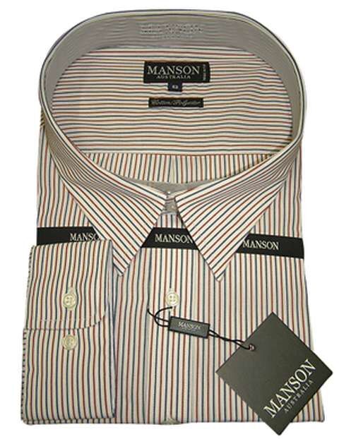 Manson Red and Navy Multi Stripe Long Sleeve Business Shirt in Cotton/Polyester, similar to a Gloweave full cut - but goes up to a size 62.