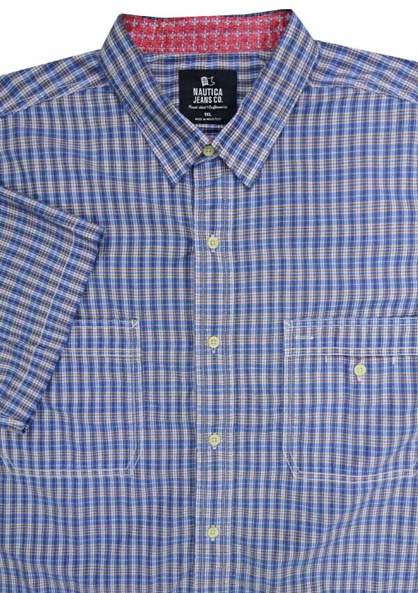 Nautica Check short sleeve shirt. With button collar. Double chest pockets. Made of 100% Cotton. Full chest measurements are as follows: XOS = 128CM 2X = 140CM 3X = 150CM 4X = 164CM 5X= 176CM 6X = 188CM