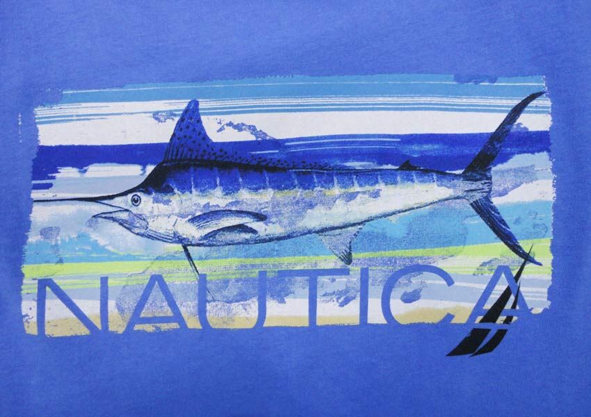 Nautica Fish T-shirt. With print on back of shirt. Classic fit. Made of 100% Cotton.