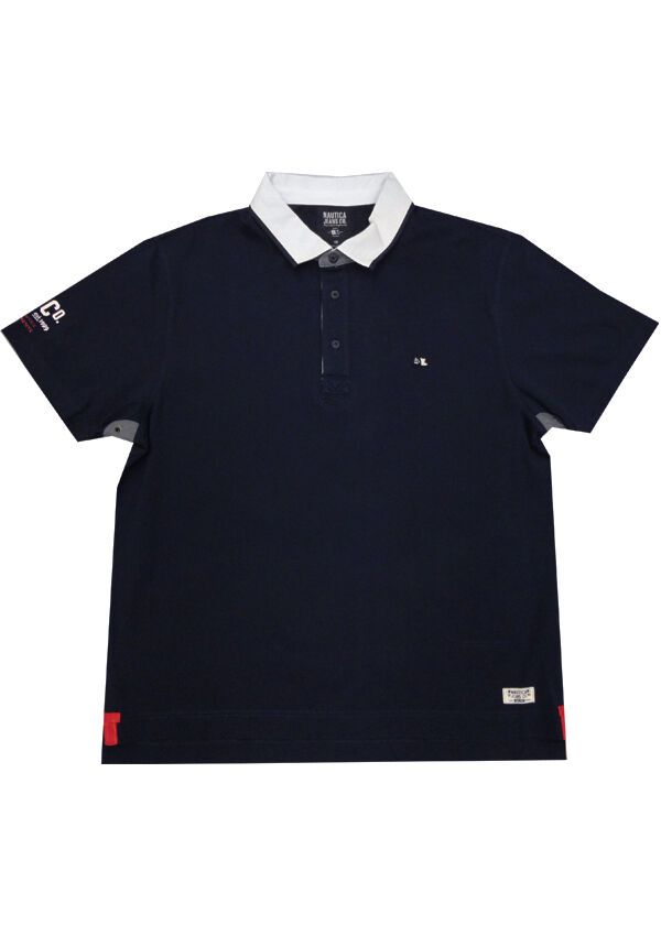 Nautica Flag short sleeve polo shirt with contrast collar. Large print on the back. Made of 100% Cotton.