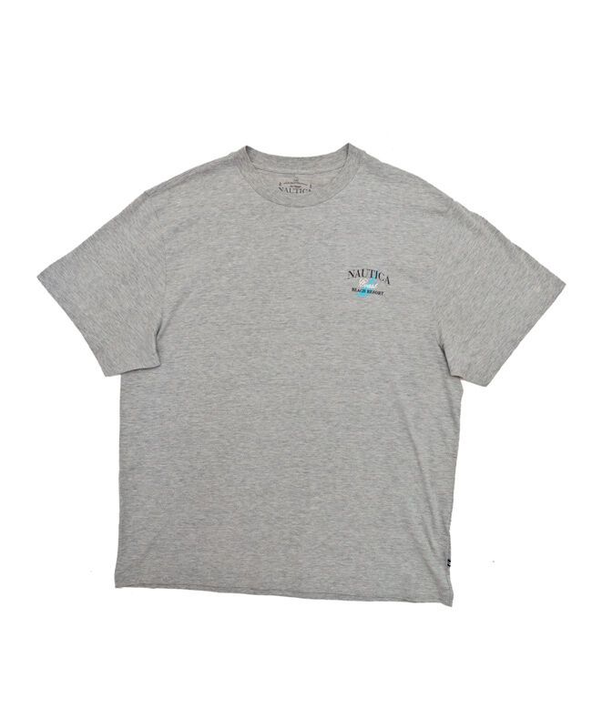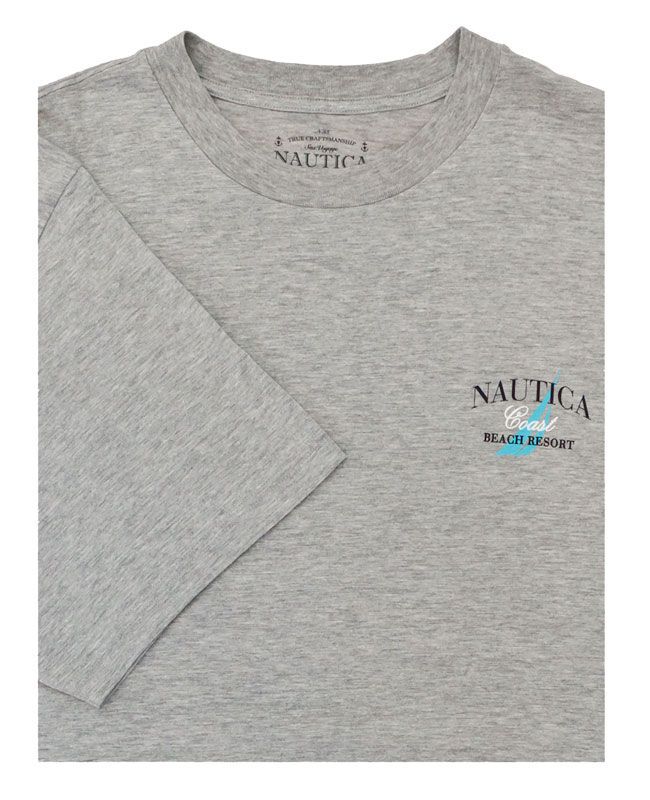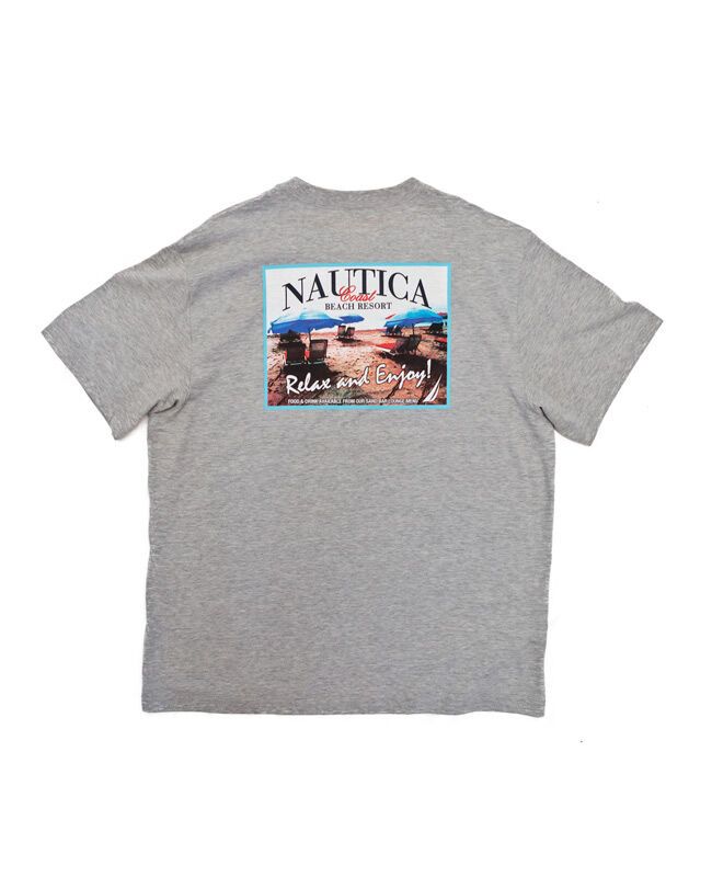 Nautica Relax short sleeve t-shirt with small print on front and large print on back. No pockets. 90% Cotton / 10% Polyester.